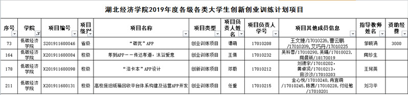 详见:关于公布我校2019年度各级各类大学生创新创业训练计划项目名单的通知