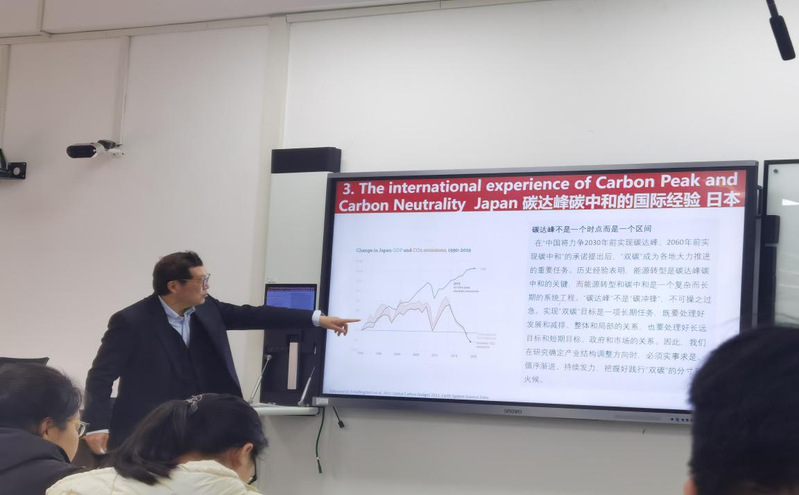讲座中,薛进军教授全方位,全景式介绍了碳中和理念,主要思想及国外减碳措施的国际经验对中国碳达峰碳中和政策的启示,针对世界各别国家减碳现状,薛教授用直观的图表案例给予解析。