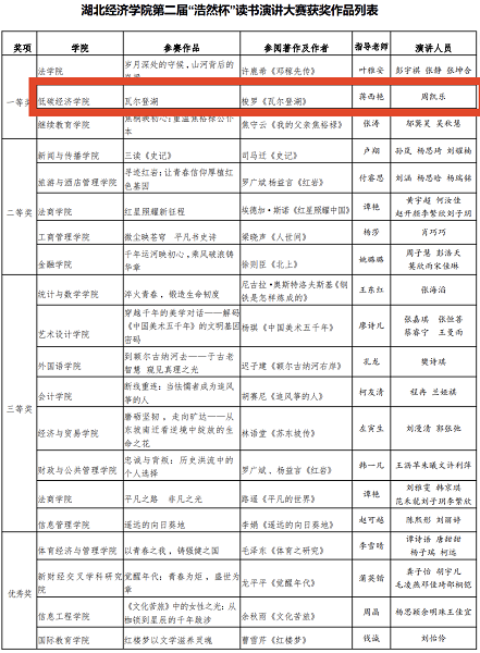 该作品由我院周凯乐、王蕊、刘思宇三位同学共同完成,周凯乐同学上台演讲,他从索罗隐居湖畔的背景和原因,生态环境的无价,现代人的瓦尔登湖之路三个方面介绍了《瓦尔登湖》这本世界名著,演讲内容紧扣大赛主题,结构清晰完整,周凯乐同学声音洪亮,表达流畅自然,富有真情实感,举止大方,娓娓道来,具有很强的感染力与吸引力,演讲内容与演讲风格获得了评委们的一致好评。