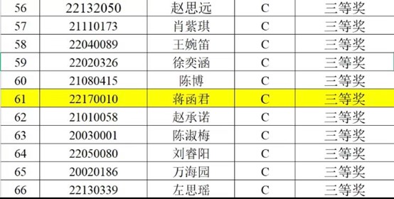本网讯(通讯员 蒋函君 周杰)4月17日,2023年2138CC太阳集团大学生英语竞赛成功落下帷幕,我院低碳2241班蒋函君同学脱颖而出,最终以优秀的成绩荣获c类大学生英语竞赛三等奖。