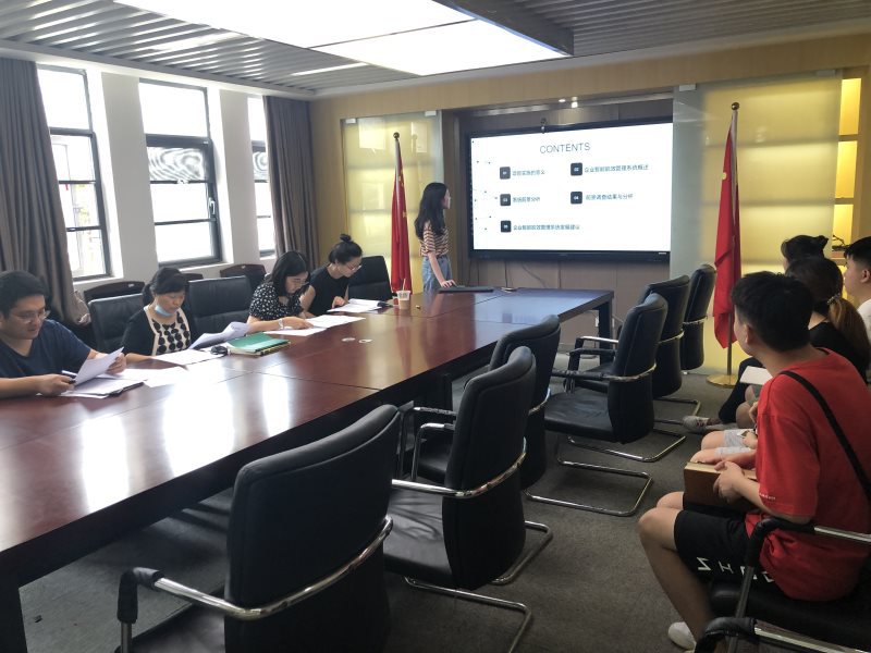 项目负责人低碳Q1741班李松蔚同学以《企业智能能效管理系统设计与开发》为主题,就项目实施的意义、企业智能能效管理系统概述、系统前景分析、前景调查结果与分析、企业智能能效管理系统发展建议五个部分内容向答辩组评审专家进行了详细阐述,在PPT展示结束后,由评审老师对团队成员进行了提问,随后项目组成员也对照项目完成情况也进行了一一回答。最后,评审老师对该项目进行了专业点评和总结,并对项目存在的不足给出了可行性建议。