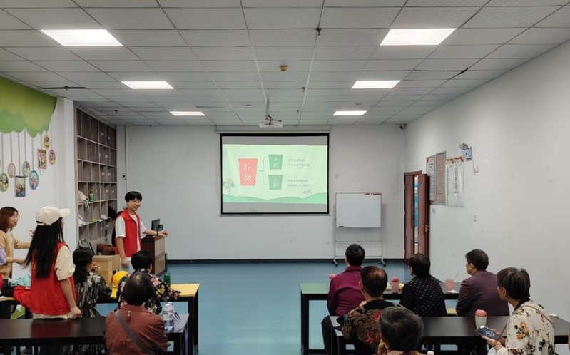 活动一经公布就受到了社区居民的热烈响应,吸引了二十余位居民积极参与。此次活动以宣讲PPT的形式向居民们普及垃圾分类的相关小知识,包括如何区分不同种类的垃圾,各类垃圾桶的颜色等;通过将不同种类的垃圾写在七巧板上,让社区居民以三人小组为单位拼七巧板的游戏形式来进一步加深对垃圾分类的认识,并以参与有奖的形式调动社区居民的积极性。在其乐融融的氛围中,社区居民们更加认识到了低碳环保、垃圾分类的重要性。社区的工作人员和青协的志愿者们在前期筹备工作与后期分工中配合默契,为活动的完美开展奠定了基础。