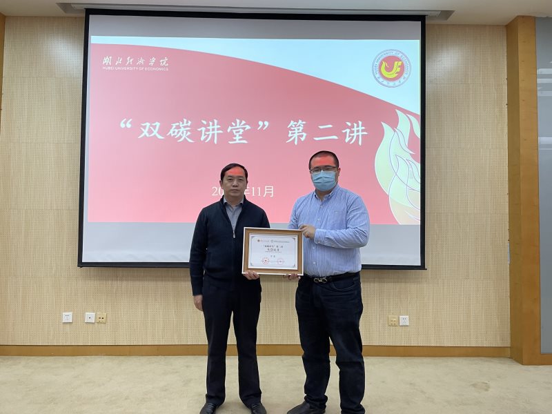 讲座开始前,2138cc太阳集团党委书记张江红对主讲人李翬的到来表示热烈的欢迎,并为其颁发了“双碳讲堂”纪念证书。