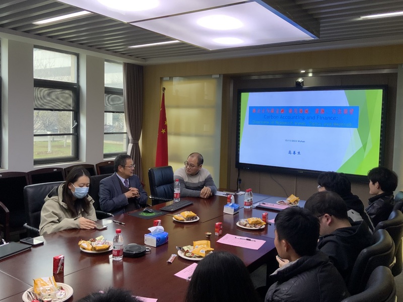 会上,汪金伟对主讲人高善生教授的到来表示热烈欢迎。随后,高善生教授以“碳会计与碳金融:研究领域、课题、方法展望”为主题,以目前碳会计与碳金融的发展现状和问题为切入点,首先简要介绍了碳会计与碳金融的概要,并围绕碳会计研究、碳金融研究与案例研究介绍三方面展开,并详细讲解了企业碳会计与披露、碳披露与报告、碳会计与供应链管理:研究供应链的碳足迹等内容。