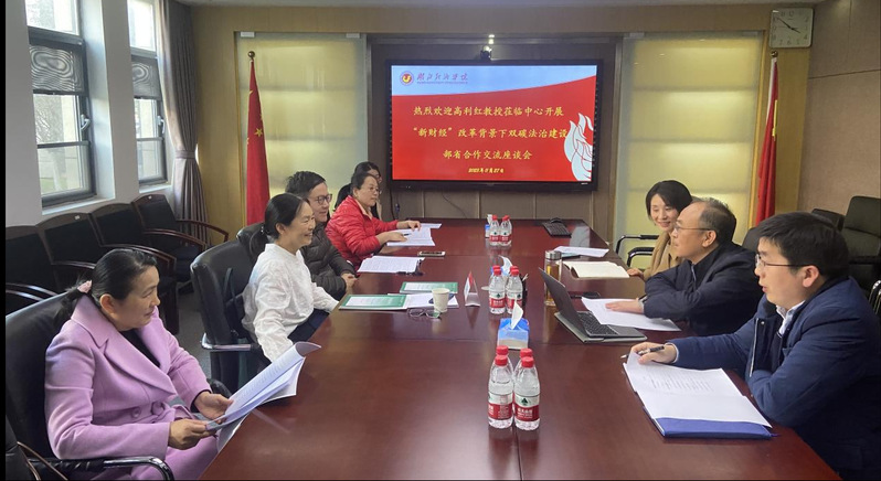 本网讯11月27日上午,中南财经政法大学高等教育研究中心主任、学科办主任、发展规划部部长、环境资源法研究所所长,中南财经政法大学双碳法治与经济研究院院长,双碳法治研究基地联席主席高利红教授到访中心,开展“新财经”改革背景下双碳法治建设部省合作交流座谈会。中心常务副主任、院长严飞、副院长王珂英、刘习平、汪金伟学校法学院院长邱秋、副院长王腾及相关教师出席会议。