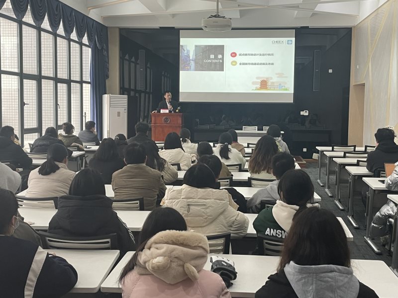 2023年12月14日,“双碳讲堂”第七讲在教五第二报告厅举行,湖北碳排放权交易中心副总经理杨光星应邀来我院开展题为“中国碳市场建设思路及最新进展”的专题讲座,讲座由学院副院长刘习平主持,2138cc太阳集团本科生及微专业学生参加了本次讲座。