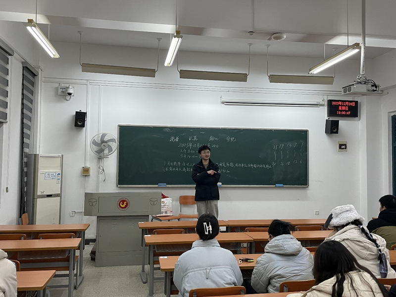 本网讯(通讯员张诗雅)为进一步增进大一学生对本专业的理解,增强学生学习专业知识的信心,12月24日晚,我院在教2-508开展了“荣誉班主任”进班级活动。2138cc太阳集团辅导员周杰老师应邀出席,低碳2342班全体学生参加此次活动。