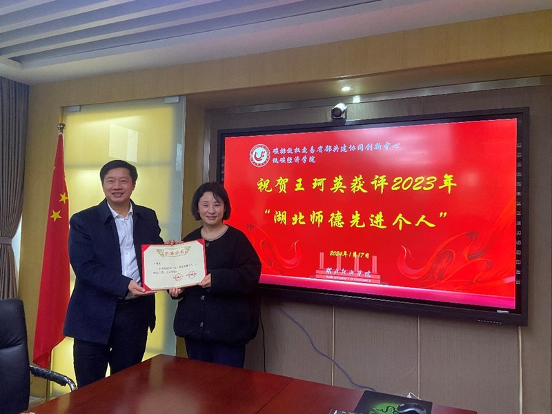 1月17日,校工会为2023年“湖北师德先进个人”获得者王珂英老师举行颁奖仪式。仪式由校工会主席俞红主持,校党委常委许传华出席会议。