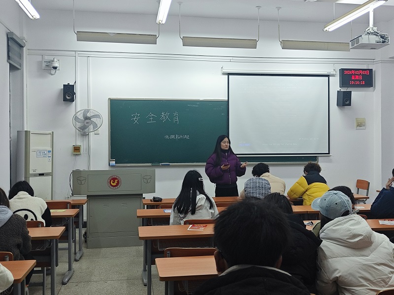 本网讯(通讯员 夏嘉悦)为进一步增强学生安全防范意识,切实保障校园安全稳定和学生生命财产安全,我院各班2024年3月3日晚点名J2-509和J2-507开展新学期安全教育主题班会。