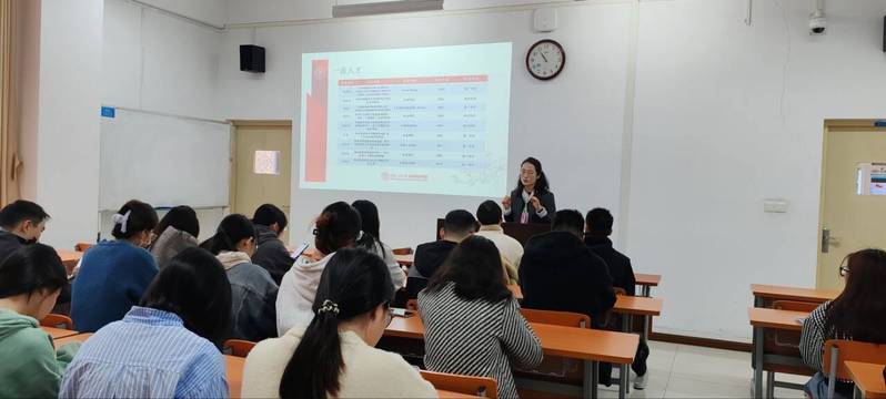 本网讯(通讯员张欣茹 蒋西艳)为进一步加强学生对考研院校及专业的了解,坚定学生考研信心,3月16日上午十点,我院在教五110开展中国人民大学应用经济学院拔尖创新人才培养体系宣讲和座谈会,中国人民大学应用经济学院碳经济专硕行政主管张男老师应邀来院宣讲。座谈会由学院蒋西艳老师主持,2021级30余名同学参加。